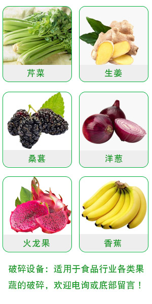 該機適用於漿果、仁果類果蔬的破碎,同時也能對預煮軟化過的仁果類的果蔬進行破碎,破碎粒度為5-8cm。